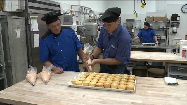 Chip helps prepare a brand new cupcake