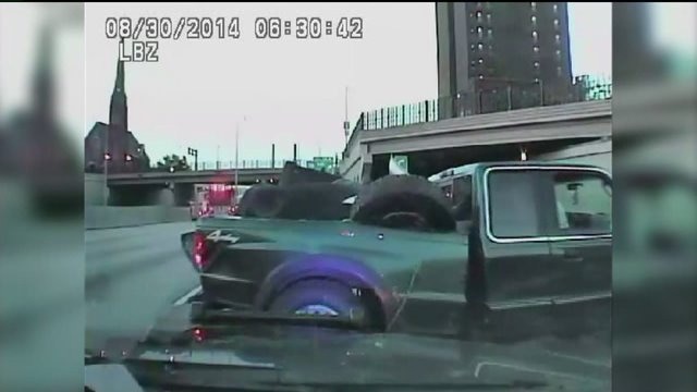 Couch falls off pickup truck, creates mess in Marquette Interchange