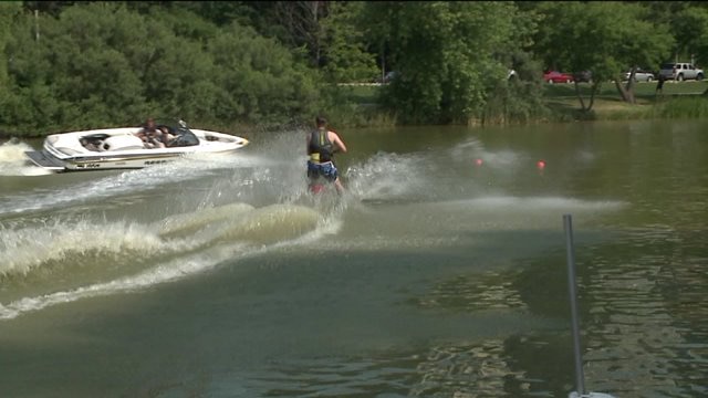 Chip hits the water, puts his skiing skills to the test