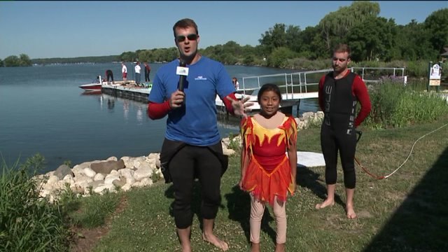 Chip hangs at Pewaukee Lake Water Ski Club, prepares to hit the water