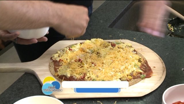 Chip helps make a delicious breakfast at Angelic Bakehouse