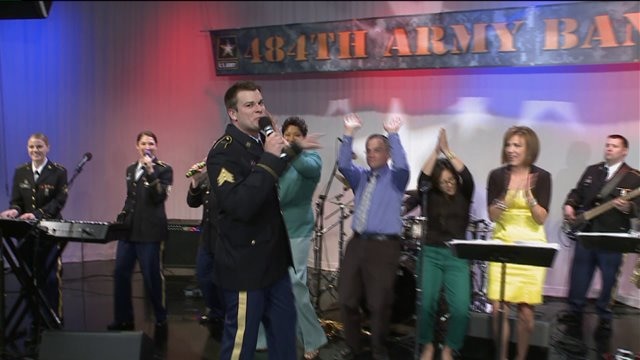 Chip has a blast rockin` out with the 484th Army Band