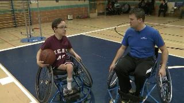 Chip talks with student about heating up the court