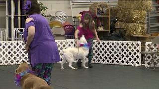 Chip learns about different classes at Dancers with Woofs