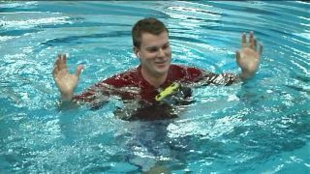 Chip talks with head lifeguard at UWM