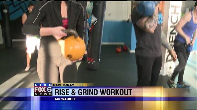 Laura does a kettle ball workout