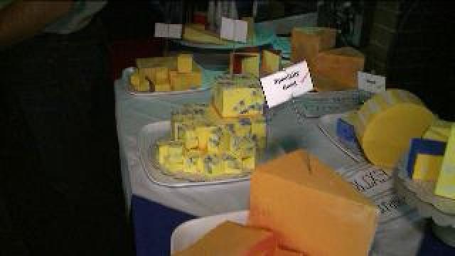 Chip checks out cheese that is part of set