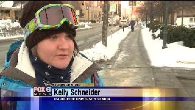 Bundled up Marquette students head to class Monday