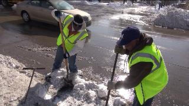 Clearing ice-clogged drains in Milwaukee