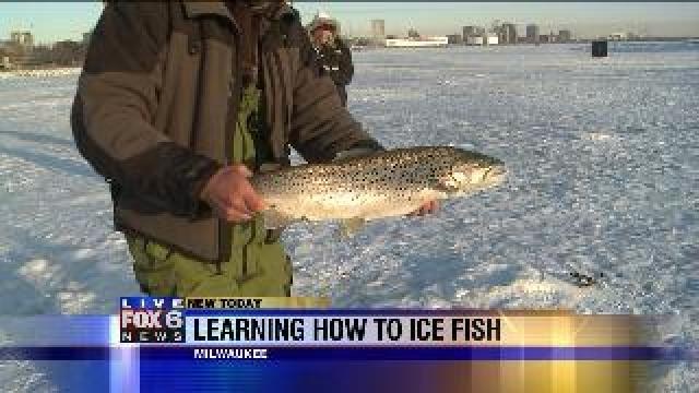 Laura catches a Brown Trout on LIVE TV while ice fishing