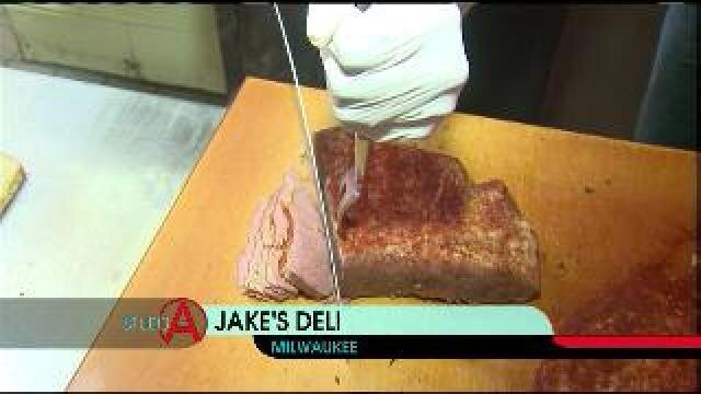 Brian Kramp gets a meat cutting lesson at Jake's Deli