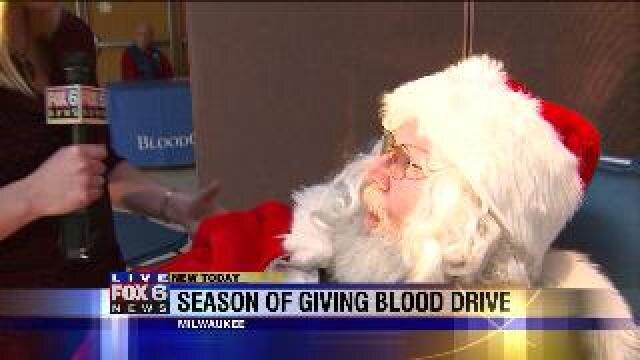 Laura talks with Santa at Season of Giving Blood Drive