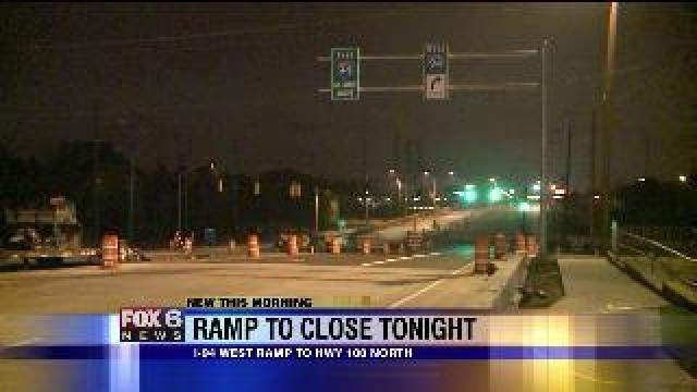 I-94 westbound exit ramp to northbound WIS 100 to close