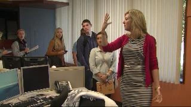 Katrina gives tour of FOX6 News to UWM journalism students