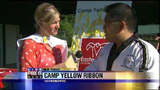 Laura learns how to break a board at Camp Yello Ribbon