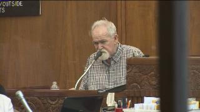 John Spooner speaks to jury