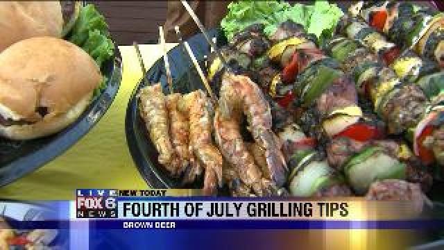 Laura puts sauce on grilled food