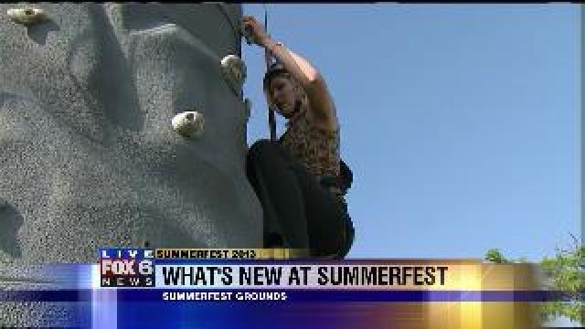Laura climbs a rock wall at Summerfest