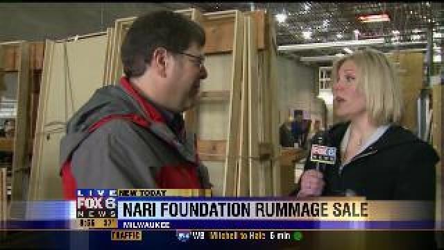 Laura talks with shoppers at NARI rummage sale