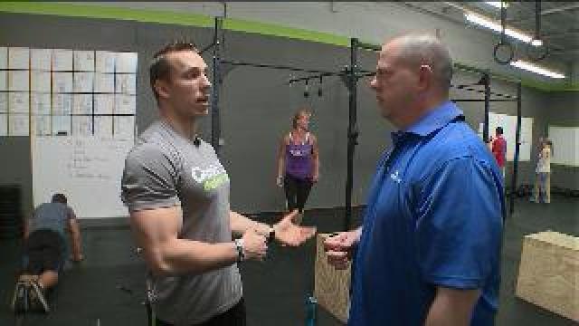 Tony works with a kettle bell at CrossFit in Oak Creek