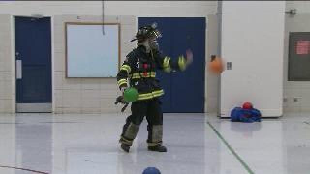 Firefighters and dodgeball training