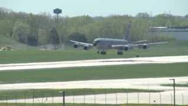RAW VIDEO: KC-135 lands safely after engine issue