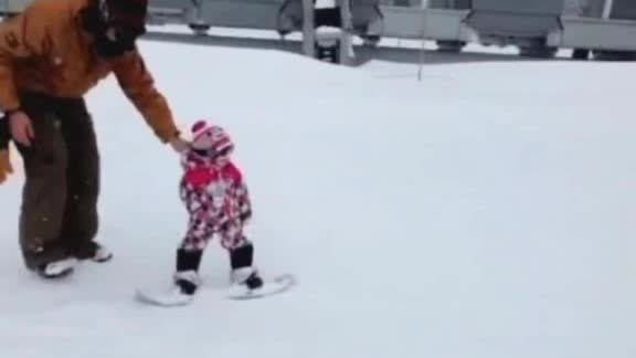 One-year-old loves to snowboard