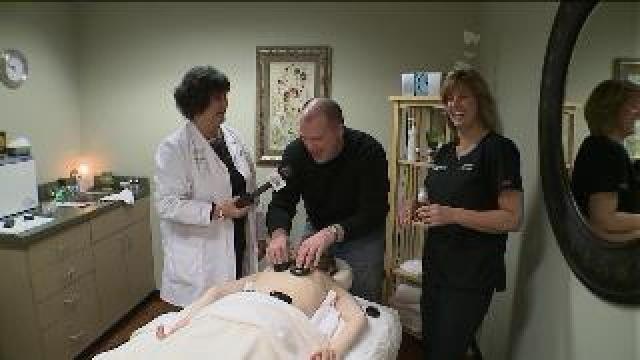 Tony works with hot stones at ANEW