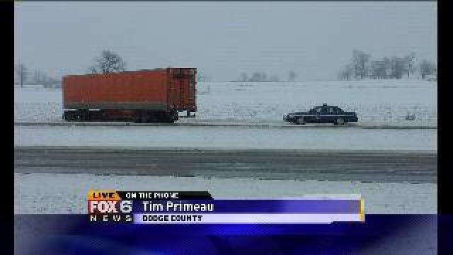 Jackknifed truck in Dodge County
