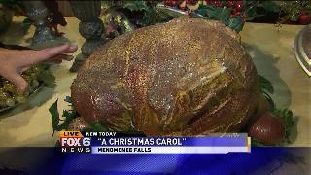 Laura checks out some props for the musical A Christmas Carol