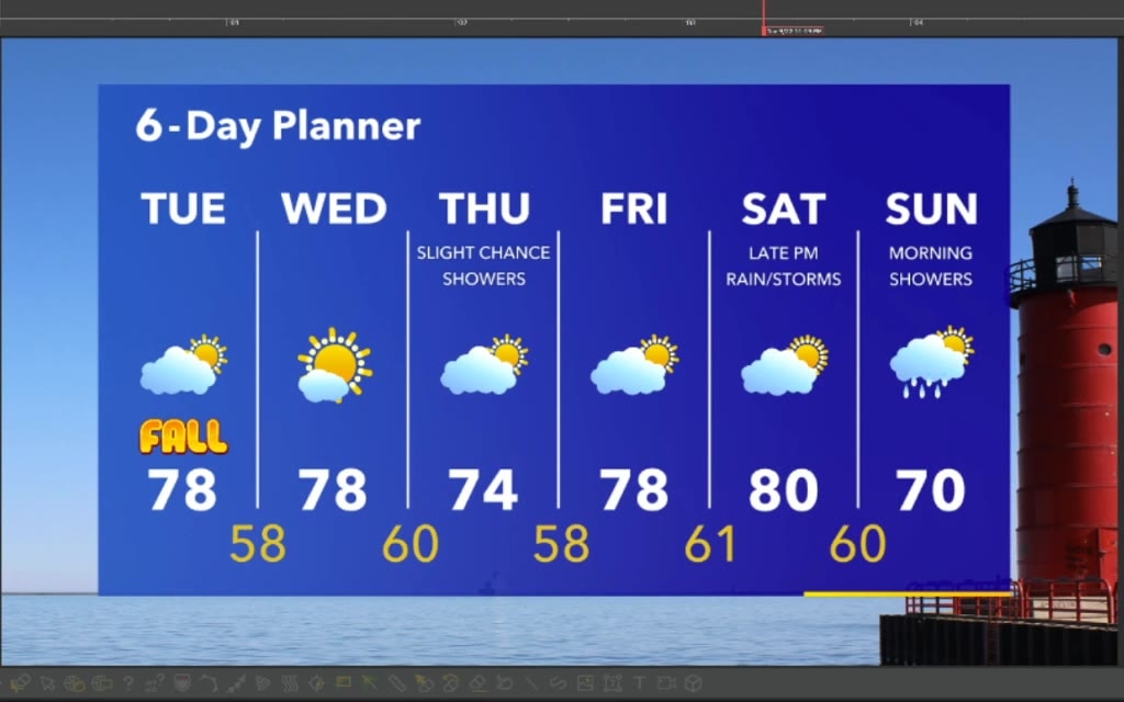 Happy first day of Fall! Pleasant with temperatures in the upper 70s the next couple of days. Slight chance for rain showers Thursday and again Saturday night. Cooler next week.