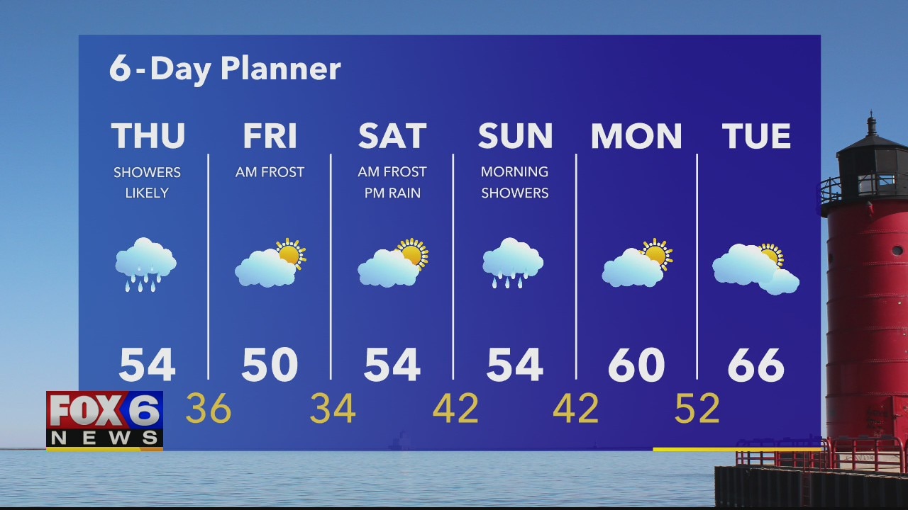 A cold front drops through Wisconsin today generating showers and ushering in some much cooler air. Behind the front we clear and temperatures drop into the 30s with frost likely overnight into tomorrow morning. A Frost Advisory goes into effect Friday morning for all of Southeastern Wisconsin. Showers return this weekend with highs in the 50s but we do start to warm up and dry up next week.
