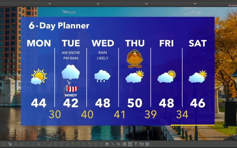 Dry and sunny today but snow arrives Tuesday morning with a few inches possible inland. Snow changes to rain later Tuesday afternoon and sticks around through Wednesday. Thanksgiving is looking dry with a high of 50.