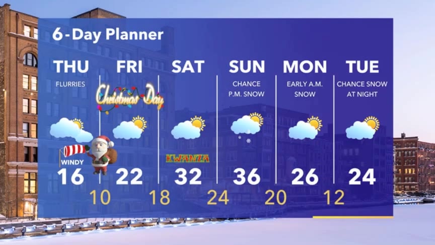 Flurries or periods of light snow possible tonight and Thursday, plus windy and much colder with temperatures in the teens on Thursday.