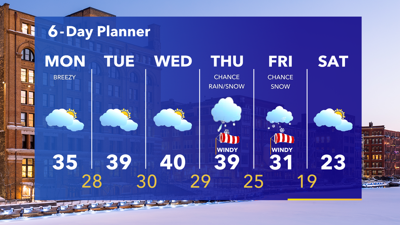 We have a mild week ahead before a big system moves in late in the week. Above average high temperatures continue for most of the week.