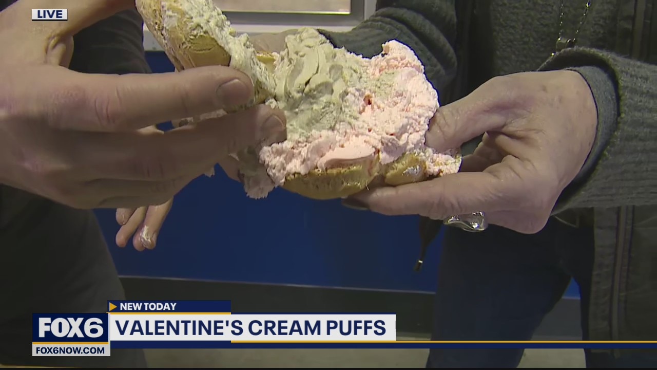 Brian is getting a look at the Valentine’s Cream Puffs available this weekend on the fair grounds.