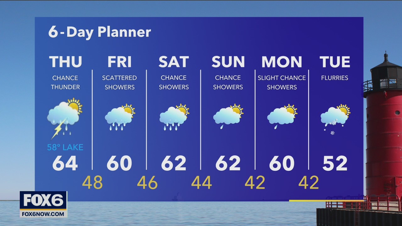 Showers are expected off and on today into Friday as an area of low pressure moves north through the region. With a little daytime heating we should see enough instability for isolated thunderstorms this afternoon.