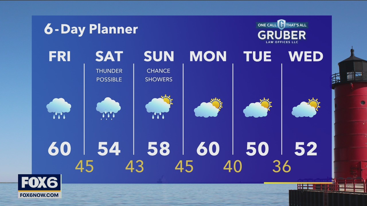 Scattered showers continue today. Highs will be in the upper 50s to near 60. We should get a brief break from showers overnight but rain returns for the weekend. Weekend highs will be in the 50s.