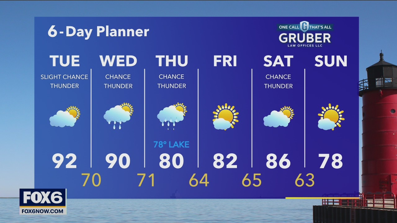 Slight chance for a few early showers and thunderstorms then we clear out to sunshine. Temperatures will be in the low 90s today and dewpoints will climb to to the upper 60s for a very humid day.