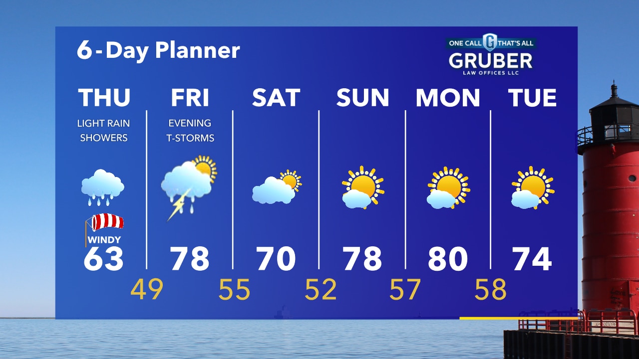Increasing clouds late tonight with patchy drizzle possible overnight. Temperatures in the 40s. Drizzle and light rain possible, especially near the lake on Thursday.