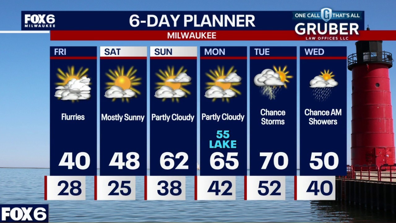 A windy and chilly start to the day, and staying cool into the afternoon with temperatures around 40. There is a chance for a few flurries at times.