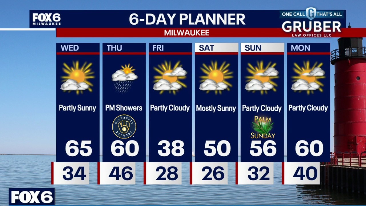 A beautiful Wednesday in store with some sunshine and temperatures in the middle 60s. There is a chance for rain on Thursday, mainly during the afternoon and evening, so tailgating for the Brewers Home Opener looks dry and mild. Cold Friday behind that system then warming over the weekend.