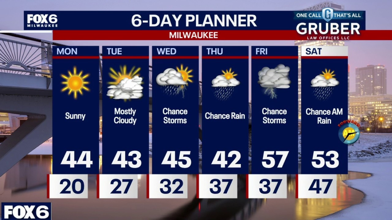 Frosty Monday morning with temps in the teens inland to low 20s near the lake. Mostly sunny to sunny skies on Monday. Highs in the mid-40s inland, upper 30s near the lake.