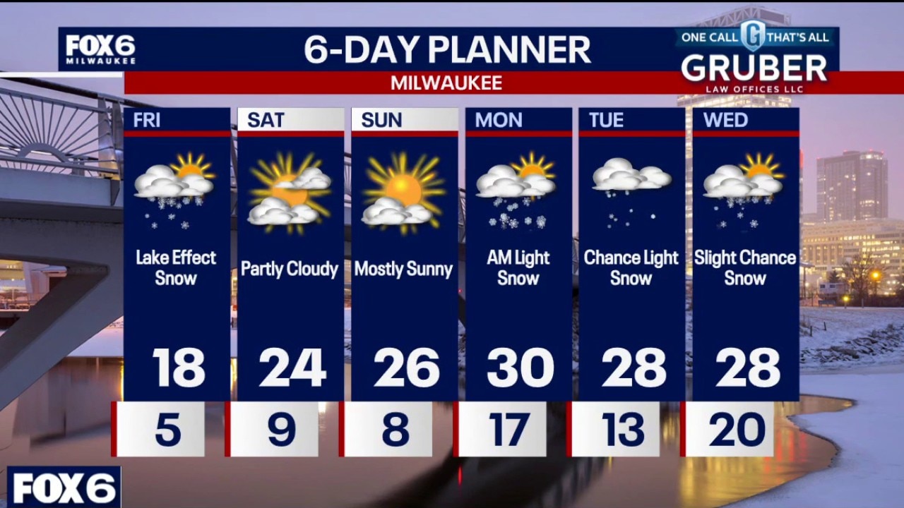 Cold conditions continue, with wind chills in the negative teens early Friday morning. Lake-effect snow is likely Friday, 1 to 2 inches are expected with localized higher totals if snow bands linger, while inland areas see lighter amounts.
