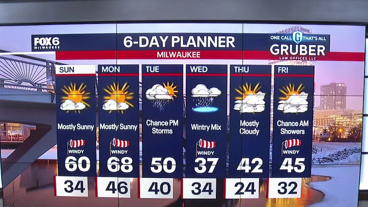 Partly cloudy to mostly sunny morning with temps in the low to mid 30s. Mostly sunny, windy, and warmer on Sunday with a highs near 60F. Getting even warmer on Monday with mostly sunny skies, windy, and highs in the upper 60s!