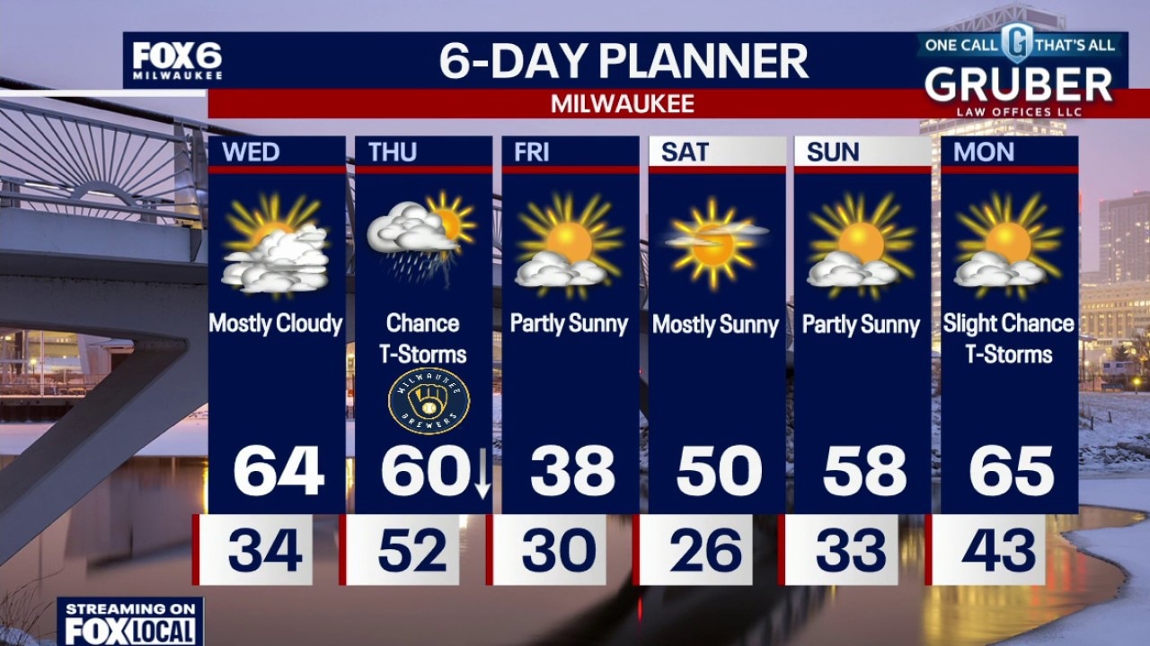 Partly to mostly cloudy. Temperatures dropping into the 30s tonight. Mostly cloudy, breezy and warmer on Wednesday. Highs in the mid-60s.