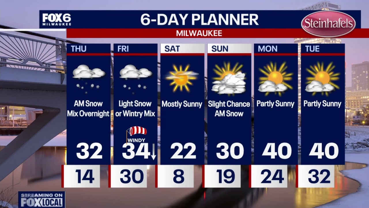 Increasing clouds overnight with temperatures in the teens. Expect some light snow on Thursday morning, especially between 8am-11am. A dusting is possible. The wind will pick up with temperatures rising to freezing for the first time since January 16th. Mostly cloudy on Thursday afternoon with another chance for snow or a wintry mix overnight Thursday night into Friday morning.