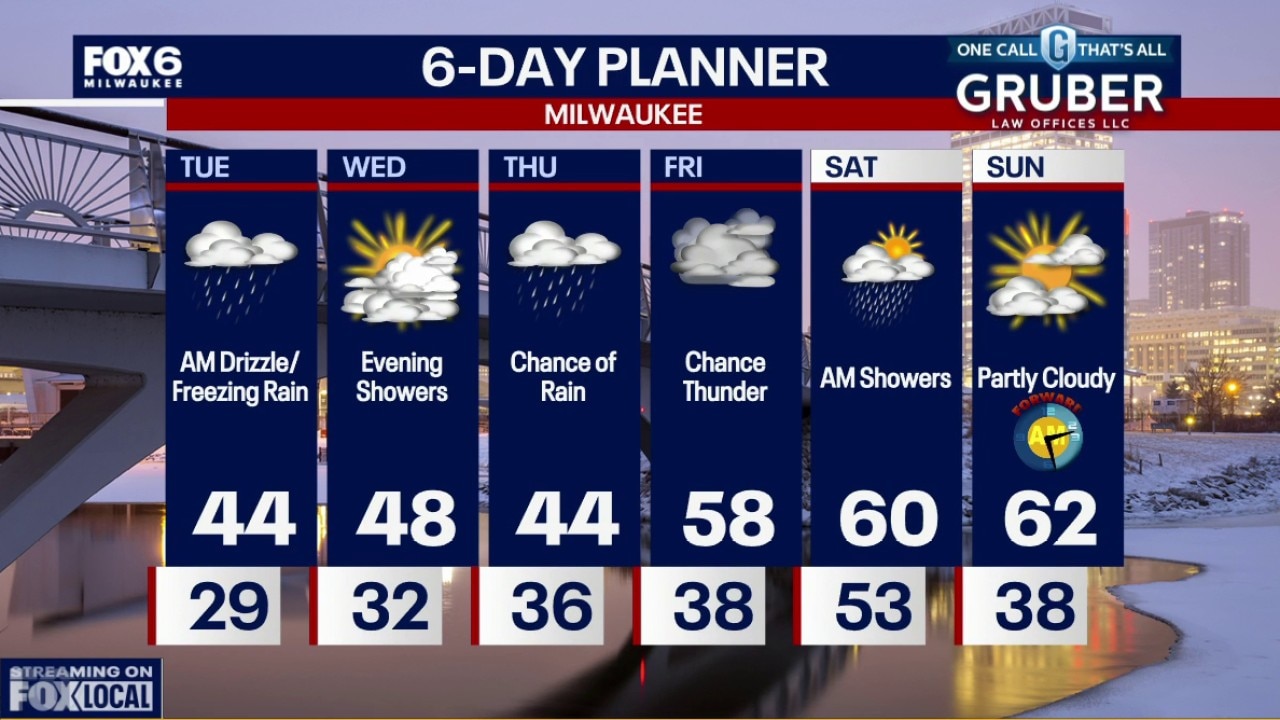 A brief window of light freezing rain is possible early Tuesday morning, but any glaze should melt quickly after sunrise. After that, temperatures trend well above normal with quiet weather through most of Wednesday.