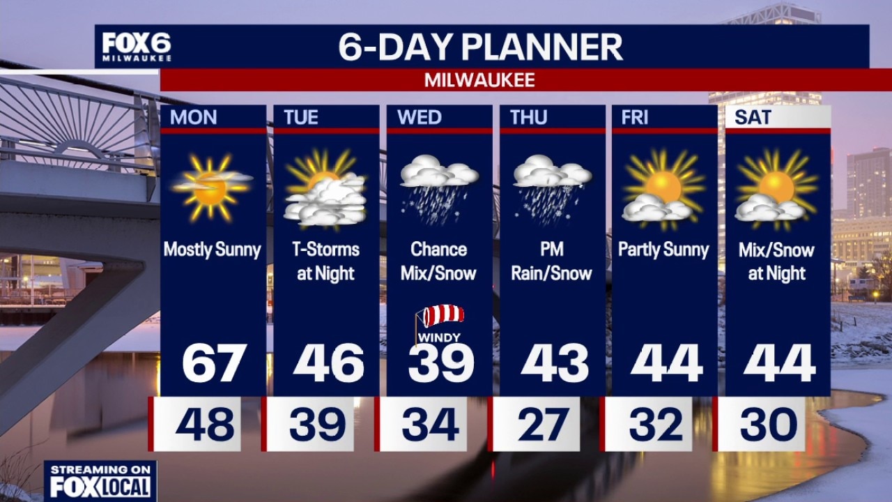 Clear, windy and warm tonight. Temperatures in the 50s this evening and upper 40s overnight. Mostly sunny and warm on Monday with a high around 67. 67 is also our current record high set in 2016. Windy, especially in the morning.