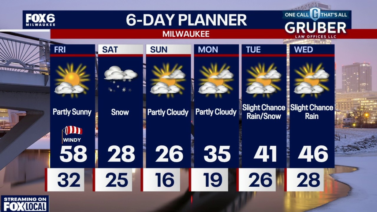 Patchy morning frost and temperatures in the mid 20s to low 30s. Partly sunny, windy and warm on Friday with highs in the upper 50s. Very windy with gusts near 30 mph.